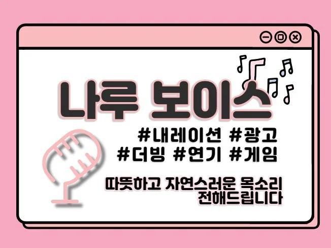 다양한 목소리로 내레이션/ 광고/ 캐릭터 / 라디오 / 더빙/ ARS 등 다양한 작업 도와드리겠습니다!