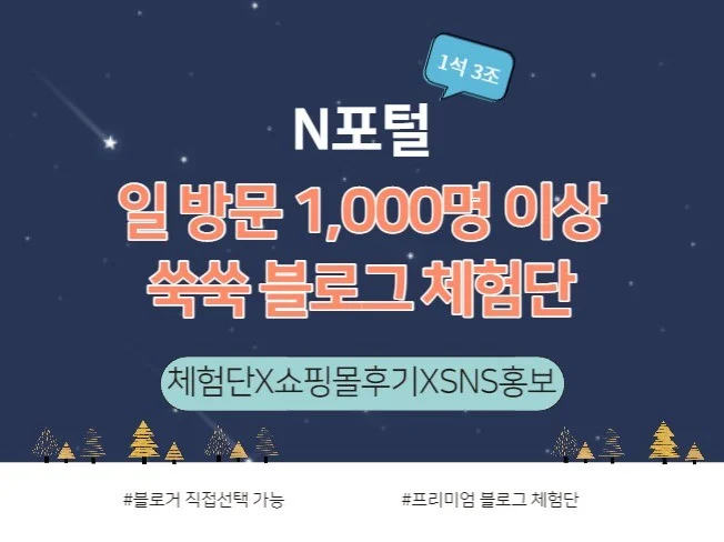 Q. N포털 일방문 1k 이상 블로거 프리미엄 체험단은 무엇이 좋을까요?