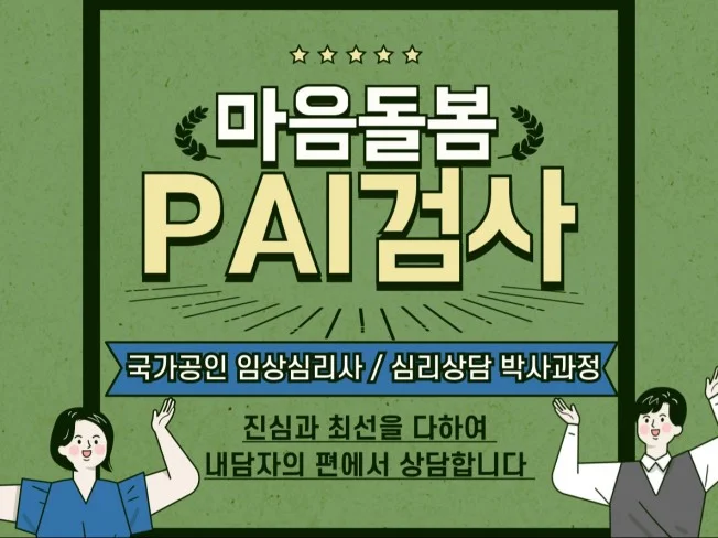 국가공인 임상심리사가 시행하는 전문 PAI 성격심리검사입니다.