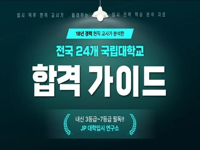 18년차 현직 고등학교 교사가 학생 상담을 위해 연구했던 전국 24개 국립대학교의 입시 비법을 공개합니다.