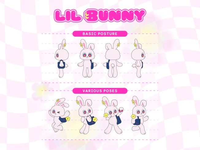 캐릭터 턴어라운드 (+워드마크 서비스) + 응용동작 5종 + 표정 5종 +캐릭터 매뉴얼 가이드북
